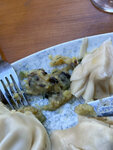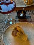 Зашли перекусить. После, искали чем заесть. Хинкали с грибами и картофелем. Принесли сырое тесто с пюре непонятной консистенции. В сопровождении какого-то аромата, точно не грибного. Аппероль принесли хороший, бокал игристого тоже приготовили хорошо. Официанты вежливые. Сделали скидку, 10% На них купим уголь🙏