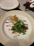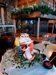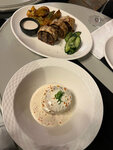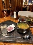 Зашли в ресторан после катки (столик надо бронировать заранее, мы - с утра). Мне любезно предоставили тапочки, чтобы не идти в лыжных ботинках. Сориентировали по меню. Блюда потрясающие! И на вкус, и подача. Уха в туристическом котелке впечатлила. За соседним столом ребятам принесли строганину на куске льда. Учитывая, что наелись до отвала, осилить ещё такое не смогли бы. Уходя, забронировали столик на следующий день) с нетерпением ждали окончания катки и вот нам принесли этот шедевр! Это было потрясающе вкусно и необычно! Рекомендую на десерт чизкейк из белых грибов. Подача в виде грибочка на поляне (фото не грузится 😭) Понравился интерьер, стилизовано под домик-сторожку, много фото с Высоцким, его сын приезжал на открытие ресторана (в Красноярском крае снимали фильм с Высоцким Хозяин тайги). Официант провел для нас мини-экскурсию по ресторану, было очень интересно!