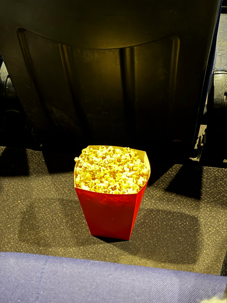Отвратительный бар. Такой размер «большого» попкорна за 590 рублей я не видела еще нигде. Вы бы хоть постыдились называть его «большой»
