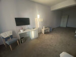 Все нормально, прекрасный вид из окна, мы на 4 этаже. Сервис прекрасный, номер полулюкс очень красивый и уютный. Есть огромная ванная, полотенца есть, зубные щетки и паста есть. Телевизор работает хорошо. Номер чистый, стоит вода со стаканами, есть чайник и можно заварить чай бесплатно. Кондиционер кому надо есть, работает. Насчет еды сказать не могу, ну ели тут еще, скажу позже. В самом отеле тихо, люди есть, но стены видимо хорошие, не слышно ничего