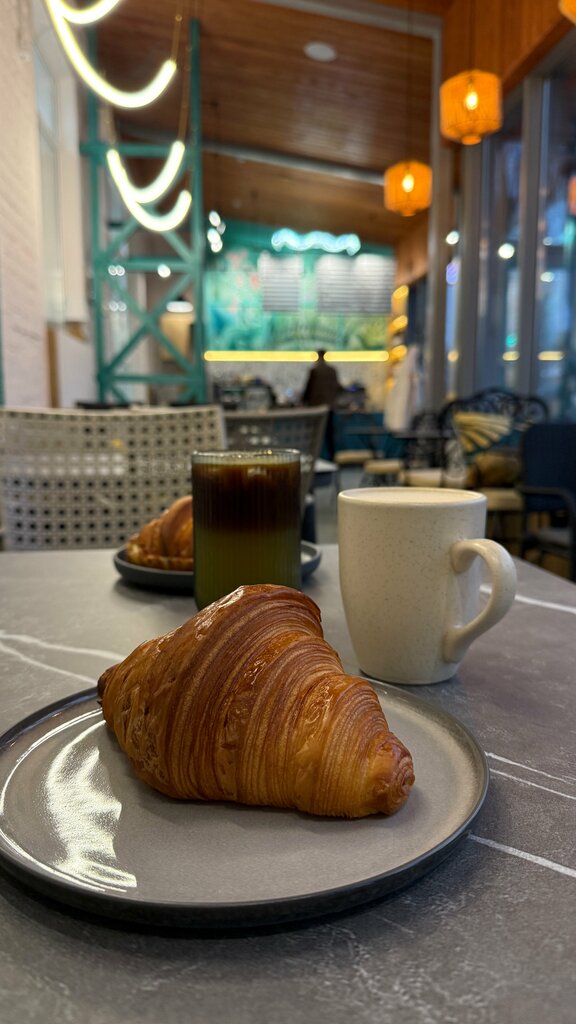 Тихое, уютное кафе, приятная ненавязчивая музыка. Людей почти нет. Часто сюда прихожу в обед «перезагрузиться» от работы. Кофе очень вкусный и десерты свежие. Приятный, вежливый персонал. Красивый интерьер. Мне кажется, было бы неплохо на столах расставить салфетки и приборы. Вот сегодня, например, взяла кофе и десерт. Дали ещё приборы. То есть мне надо до стола это все донести, учитывая, что у меня в руках ещё сумка, зонт и кофта и ещё не забыть салфетки прихватить) можно, конечно, два раза сходить, но честно неохота) и насчет десертов… я понимаю, людей, наверно, мало пока приходит, но сколько раз я была, прилавки полупустые, выбора почти нет, стоят один-два десерта и пару круассанов, один раз только попала на медовик, теперь вот хожу а его все нет и нет…но итог-место приятное, рекомендую👍🏻