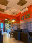 Очень приятное заведение, атмосфера узбекских узоров на коврах, царской мебелью, с мешками на потолке и картинами египетских тёток. Всё разношёрстное, но сочетается. Несколько залов. Да, кофе, десерты вкусные, ассортимент большой. В целом понравится. Рекомендосьён.