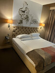 Прекрасная небольшая гостиница. На 1м этаже все оформлено так, как будто ты попал на съёмочную площадку, и даже медлительный лифт в тему. Персонал очень приятный. В кафе, где проходят завтраки, всё очень вкусно, особенно каши! Брали номер "красная шапочка", просторный, уютный, чистый, с балкончиком и видом на улицу и деревья. Соглашусь с другими комментариями, что стеклянные тумбочки хочется заменить на обычные с возможность что-то положить как "на" так и "в" неё. Расположена гостиница очень удобно. Рекомендую!