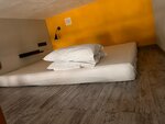 Комплекс гостевых комнат переделанных по-видимому из бывшей коммуналки. В комнате и общем коридоре в принципе есть всё что нужно на первое время. Утюг, стиральная машина, микроволновая печь, индукционная плитка, набор полотенец и постельного белья. Туалетной бумаги один рулончик, который быстро уходит, если живёшь не один. Мыло жидкое и средство для посуды самые дешёвые из Ашана, соответственно тратить их надо много (иначе не мыляться) и уходят тоже быстро. Пространство использовано максимально эффективно. Стол и стулья складные, диван раздвижной. Если кто то сидит за столом, диван не разложить, если кто-то лежит на диване, то за столом (да и нигде больше в принципе) не посидеть. Есть складная сушилка для белья, но куда ее можно поставить на долгое время не ясно. Второй этаж для молодых, активных и низкорослых. Матрас там удобный, но места между полом и потолком очень мало, перемещаться только на коленках если только, либо согнувшись, если небольшого роста. Лестница очень крутая, ночью спуститься страшно. Перила бы небольшие не помешали. Полка для мелочи на втором этаже прикручена неудачно как то. Можно ночью головой удариться. В сухом остатке неплохое место для молодых людей приехавших посмотреть Питер, которые большую часть времени будут проводить вне дома, а приходить только спать.