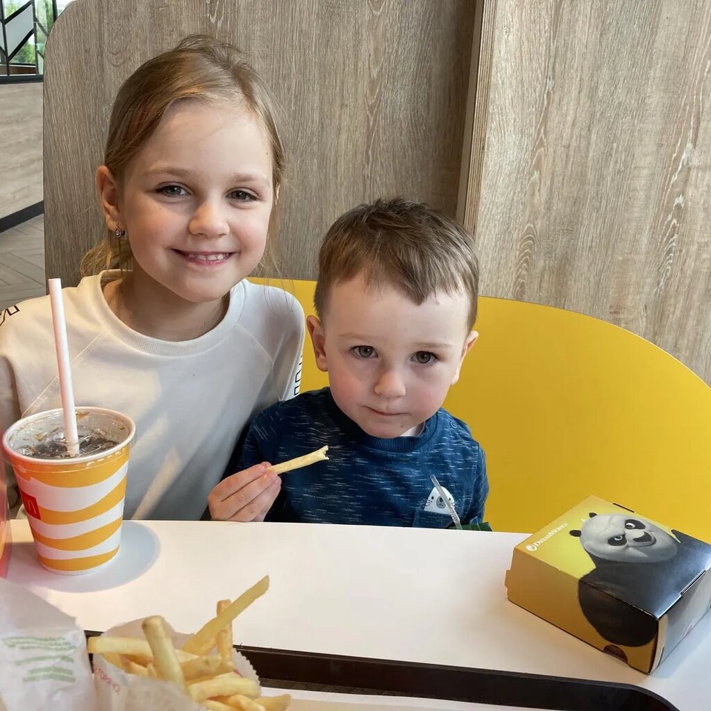 Персонал соответсвует стандартам, заказ приготовили быстро, хоть нас и было четверо. Детская площадка почему то не работала. Ели на улице, а ребёнок не давал покоя в попытке попасть в игровую зону.