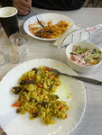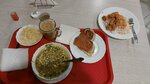 Ели плов , салат , пюре с говядиной , ещё с собой взяли запеканку и кофе. И за всё заплатили 630₽. Вся еда и даже хлеб свежайшая. Всё было очень вкусно.