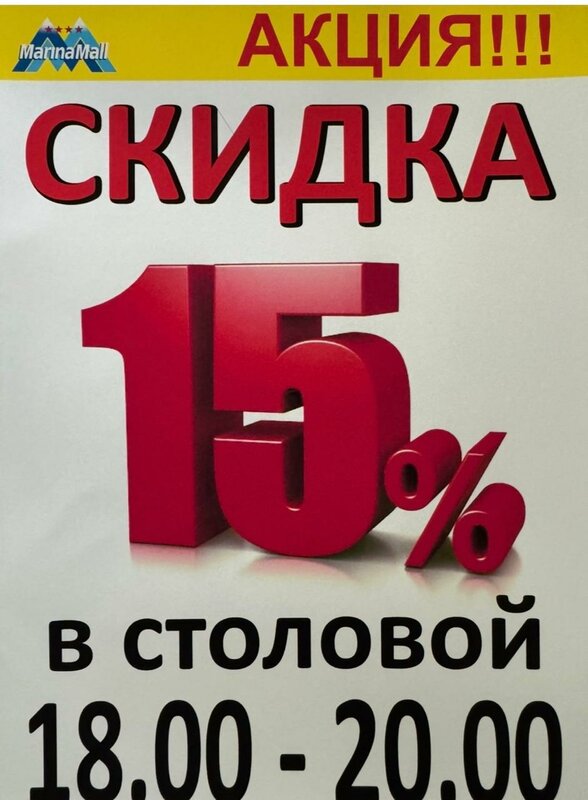 В столовой действует скидка 15 % с 18:00 до 20:00