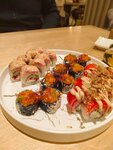 I was at this place a couple of days ago with a company, everything is very tasty, we ordered a set of rolls, everything is very tasty, the drinks taste delicious! The officials were well served, teamwork is present, you can immediately feel the care of the visitor in this institution! Prices don't bite, in a company of 4 people, they found their heads, so it was ready within 40 minutes, with enough load!! In general, I give five stars, I liked everything.