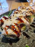 It's a very long wait. The waiter messed up the order, and instead of gyojo with shrimp, I got gyojo with chicken, saying that they were no worse than shrimp. Cocktails were brought for a very long time, and not simultaneously for the whole company, but at different times and with a very long interval. 1 star for delicious cocktails. The service is very poor. The sushi is disgusting. There were a few cabbage stalks in the salad. Gyojo is all fat, as if she had drunk butter.
