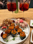 A great restaurant, we made a reservation for a table with a pre-order, so we didn't have to wait for our dishes)))) Gyoza and chicken were very salty for us, but poke with salmon and bowl with eel and tofu went very well for us - it was an interesting combination. The desserts also appealed to mochi - a light airy and unusual taste, Marumi - more dense, but also very tasty in its own way.