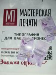Хочу поблагодарить "Мастерскую печати", с которой мы делаем уже второй заказ на работе. Всегда оперативно, вежливо, с пониманием дела и готовностью прийти на помощь! Хочу отметить менеджера Марию, с которой все время были на связи. Надеюсь, что и дальше будем с вами сотрудничать.