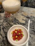 Ну начнем с того, что эстетически это очень красивое заведение Были тут пару дней назад остались довольны Внимательный персонал, приятная атмосфера Блюда несли достаточно быстро Брали окрошку на квасе(интересная подача, сметана, как мы поняли, была помещена в азот для сильного охлаждения?)выглядело интересно и вкусно Так же паста креветками и страчателлой(естественно,в меню,это более сложное название😀) Насыщенный томатный соус с травами и нежность страчателлы не оставила нас равнодушными, тоже вкусно! И раз уж ресторан с морской тематикой, взяли на пробу тартар из лосося с манго В целом неплохо, рыба свежайшая, но на наш вкус слегка был пересол Подача красивая В целом все супер, думаю повторим поход сюда:)