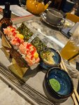 Был в обеденное время, в будний день. Обслуживание быстрое, официант вежливый, интерьер приятный, сделано со вкусом. Еда. Брал Том - Ям ( был пересолен, и полторы креветки на весь суп, рис который шел отдельно был почему - то сладким, вообщем не понравилось, далее севиче с белой рыбой , сама рыба хорошая, но заправка своей кислотой убила весь вкус , не доел, затем открытые роллы с угрем , зачет, классная подача и финал паста с крабом, хорошая , нормальный баланс . Был еще лимонад , с грантом , лимонад норм. Может мне не повезло прост, но ожидал большего, сделали скидку на пересоленный том - ям , мило , но обычно убирают и счета