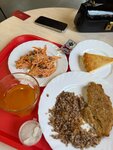 Очень вкусно. Хотя я нелюбитель таких мест. Но тут можно поесть быстро, в удовольствие и недорого (даже дешево). За то что на фото я отдала 320 руб. Это куриная отбивная, пол порции гречки, салат, облепиховый компот и соус. Классная запеканка 50 руб. Единственное, советую управляющему украсить вход может бантом или яркой вывеской. Я живу в доме рядом, но эту столовую в упор не видела. Так бывает когда ранее там были места не очень и потом ты этот дом частое уже не воспринимаешь заведомо. Заведение хорошее, лучше многих кафе и рестов. Желаю вам успехов. Я бы вообще поставила промоутера возле столовок жк центрального и раздавала флаер на бесплатный суп или что то такое.