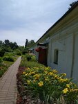 Надвратная церковь Феодора (Федора) Стратилата. Феодора - дар божий. Сейчас внутрь не пускают. Может реставрация, может просто закрыта, но лет 30 можно было забраться. Внизу в тени ворот работают археологи и реставраторы. Вокруг красота из цветов и шум деревьев близ расположенного сада. Вдоль стены, к выходу если, Трапезная монастырская, а если "заходить через ворота", то дорога прямо к вратам Троицкого собора, который прежде во времена Иван IV был Покровский собор.