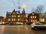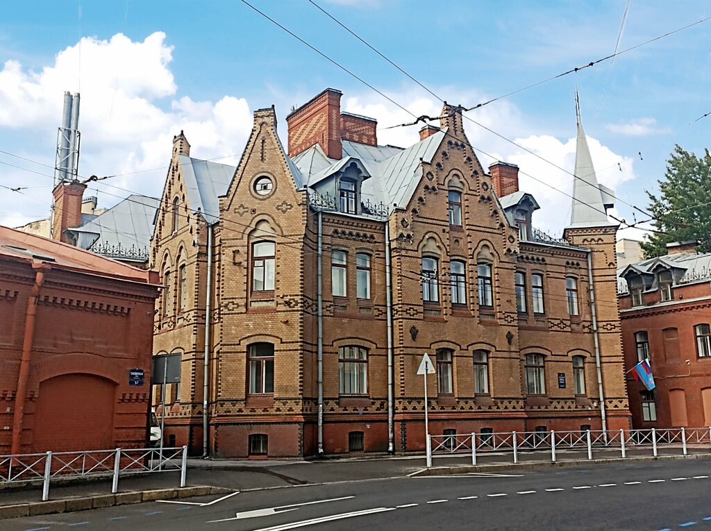 Особняк В.В. Тиса.   На запрос, Google прямым текстом отвечает: "Дом семьи Тиса — единственный особняк на Съезжинской улице и один из ранних сохранившихся домов в Санкт-Петербурге, проектируемых знаменитым архитектором Карлом Шмидтом. ... . Здание можно осмотреть с улицы, для внутреннего посещения экскурсий нет".   В отзывах оставлена запись о посещении 11.12.22 особняка группой досугового центра Василеостровского района. По оценке многих, это один из самых активных центров в городе. Здесь они тоже договорились. Молодцы.   А вообще здание многие знают по съёмкам киносериала "Литейный". В этом особняке располагался Специальный отдел, так что особняк, по-моему, фигурирует во всём киносериале. Я привёл несколько фото, для примера, где особняк в нём виден. А вот, что интерьер в киносериале из особняка, не поручусь.   Что касается архитектуры, то это: - 1897-1899 гг.; - арх. Карл Карлович Шмидт (в 1913 г  - гражд.инж. Владимир Андреевич Барри надстроил флигель).   К.К. Шмидт известен многим по зданию фирмы Фаберже, 1900 г.,  Б. Морская ул., 24. Но в этом, более раннем периоде творчества архитектора, явно проявляется «кирпичная неоготика». Признанным мастером этого направления был В. А. Шрётер и здесь не обошлось без влияния. Достаточно сравнить особняк В. А. Шрётера, набережная реки Мойки, д. № 114/улица Писарева, д. № 2 , 1890—1891, с этим.