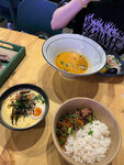 Удобное расположение, приемлимые цены Интерьер, а-ля подвал, это скорее из-за дизайна стен (его нет) Заказали блюдо без грибов, принесли с грибами, отнесли чтобы переделали, принесли через 3 минут, очень быстро, надеемся, что реально переделали, а не просто грибы вытащили) Блюда вкусные, для своей цены. Не понравились только дамплинги со шпинатом, но это дело вкуса, нам просто не понравились В остальном, всё было хорошо, девочки приятные, быстро работают, атмосфера приятная.