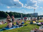 Большой пляж с песочком и травой. Несмотря не огромное количество желающих отдохнуть у воды, всегда удается найти место куда положить полотенце и приземлиться. Лежаков нет. Вдоль пляжа несколько переодевалок, а вот туалет ещё поискать придется. Отдыхающие стараются мусор за собой убирать, поэтому пляж чистый и приятный. Иногда продают мороженое и водичку, ничего другого в продаже нет. Зона для купания. Отмечена буйками за которыми массово катаются на сабах. Тут же есть их прокат. Заход плавный, дне песок и земля. От парковки идти буквально пять минут. Места есть всегда. Общие впечатления очень положительные. Нравится всей семье.