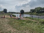 Пляж оборудованный. Есть детский батут с водой, волейбольная площадка, кафе, прокат, туалеты. Пляж трава, сходы в реку песок, местами мелкие неприятные камни. Река очень мелкая - по колено, иногда по пояс. Течение быстрое, надо быть внимательными, особенно с детьми. Есть возможность полежать в тени - навесы и столики. Парковка бесплатная, мест всегда хватает - в поле перед входом. Лежаков я не видела, может, в прокате и есть. Приезжают , в основном, местные жители или отдыхающие в пансионате Солнечная поляна. Издалека ехать не советую, сервис так себе, а народу много, особенно в жару.
