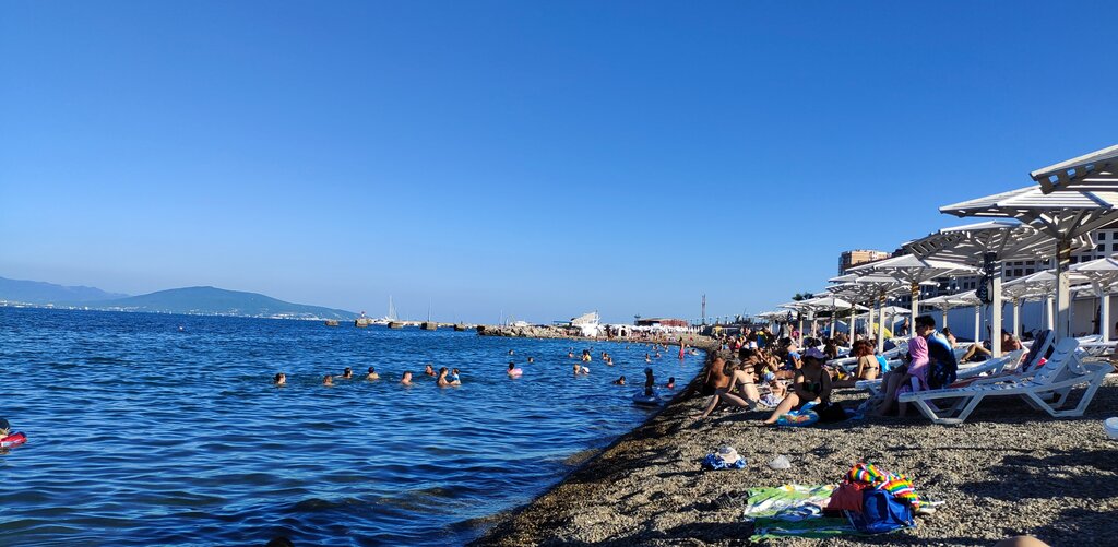 Были с детьми с 1 июля. Пляж чистый, мелкая галька. Нам было приятно ходить, хотя видела, что люди предпочитали резиновые тапочки. Вода чистейшая, прозрачная. Вход в воду удобный, никаких острых камней не было. Людей было не много. Есть кабинки для переодевания. Продаются напитки и мороженое. Туалетов нет. И душа я не увидела. Парковка свободная вдоль пляжа на набережной. Мы ставили машину ближе к церкви. Там всегда были места. Единственный минус- на тот момент нам не повезло-была холодная вода (природное явление-апвэллинг). Через несколько дней потеплела.