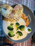 Кухня вкусная, сытная. Подача эстетичная. Но очень разочарована в обслуживании. Официант Дмитрий неприветлив, местами раздраженный. Не спросил каким курсом подавать разные блюда, и в итоге принес все вместе, и когда мы хотели насладиться выпечкой, она уже остыла.