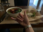 Как говорит наш дорогой шеф - Куй железо, не отходя от кассы! В голове сразу раздается фирменный смех липового таксиста Лёлика в исполнении моего любимого Анатолия Папанова и это уже вторая рецензия начинающаяся с крылатой фразы всеми любимой кинокомедии Леонида Гайдая, но если в первой я вас познакомил с Дубровкой, то здесь смысл заключается в посещении двух кафе Вьет Вок друг за другом, чтобы максимально четко сделать сравнение и предоставить соответствующий вывод, но обо всем по порядку ниже... Открывая поисковик и вбивая указанный адрес вы не попадаете на страницу непосредственно Вьет Вока, а направляетесь напрямую в локал бар Аркадия Зельтцера 'Прогресс' с коим и была создана коллаборация в нескольких заведениях, о которых я напомнил в предыдущем отзыве, но вот именно заведение на Фрунзенской набережной я посещаю впервые, а значит сегодняшний Phở Bò станет 511-ым в моей Food копилке... Выйдя с метро, необходимо сделать минирывок через подземный переход, после чего свернуть во двор, где и притаилось это двухэтажное здание с входом спрятанным от глаз проходящих за шаурмичной. На улице мокрый снег с дождем и желание скорее встретиться с плошкой наполненной огненным бульоном с каждым шагом становится все сильнее и вот открываю дверь, попадая в знакомый по стилистике пивной зал, который не в коем случае не является классической пивнушкой. Здесь для любителей пива-интровертов созданы идеальные условия, а именно пополнив карту на н-ную сумму достаточно просто подойти к кранам расположенным прямо в стене и приложить эту карту к выбранному напитку. Подставив заранее стакан, с нее спишется нужная сумма и кранчик начнет заполнять сосуд пенным напитком, но стоит добавить, что если захотите выпить пивную пинту, то необходимо будет заплатить дважды, так как подаваемый обьем в основном 300мл с ценником +- 300₽. Но я пиво не пью, как говорится и другим не советую, а если уж вы его попиваете, то не стоит злоупотреблять, хотя с таким ценником думаю это не так уж и просто, но вернемся к вьетнамской кухне за которую здесь отвечает повар, чьи руки являются носителями кулинарной культуры Вьетнама. Этот факт конечно радует, но сразу точно начинаешь ожидать чего-то точно достойно-интересного. Итак, оплатив 590₽ молодому кассиру славянину в большей степени, я так понял, отвечающему за довольно активные вечерние интернет заказы на доставку еды. Кем-то в отзывах уже написано, что те же боковые светильники в количестве трех штук имеют одну рабочую лампочку, которая дарила свет этому же молодому человеку, расположившись после кассы с ноутбуком за стойкой под ней. Мне для съёмки явно не помешало бы дополнительное теплое освещение, но пощёлкав тумблеры советской техники результат не появился и я сдвинулся к другому краю барной стойки под освещение с потолка, которого явно не хватало в помещении - такой небольшой перебор полумрака с учетом 'советского' лофта под массивным мозаичным панно. Вьетнамец очень и очень активен в отличии от своего коллеги за кассой: ловко и умело он отправляет в посудину один за одним ингридиенты, залив по итогу содержимое ароматным бульоном. После ставит поднос на место выдачи, где я слышу, что заказ можно забрать. Под стойкой есть навесной ящик, где необходимо взять бумажные салфетки, нужные вам приборы и соуса на выбор Шрирача, Зам Той