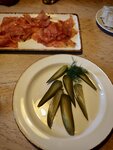 Сготовлено в целом хорошо, мясо нежное. К закускам есть вопросы, на фото порция соленьев (из одного огурца)). Хороший выбор напитков. Но меню "жлобское" т. к. Нет весовки блюд. Персонал вежливый. Цены чуть выше среднего. Можно сходить.