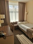 Были в середине июля, стояла жаркая солнечная погода. Номер бизнес на двоих с отдельными кроватями с дополнительным местом для третьего на еврораскладушке с кондиционером и завтраками, на три ночи. У еврораскладушки в середине спального места средние опоры поднимают уровень спального места. Получается в середине жесткая горка. Чтобы комфортно устроиться, приходилось приподнимать опору в изголовье, что-нибудь подкладывать под ножку. Кондиционер Ballu в нашем номере был в наличии и работал хорошо. Кроме того он так удачно направлен на ту часть номера, где ноги кроватей, что можно укрыться теплым одеялом и тебя не переохладит и не продует. На ресепшене слышали жалобы других постояльцев гостиницы, что не у всех кондиционер работал так хорошо. Хотя первое впечатление было такое, что тесно, три кровати с промежутками по 20 сантиметров и вентиляторы на улице периодически включаются(с тыльной стороны гостиницы, где Пятерочка и Варшавская улица) и холодильник под столом работает шумно. Но, матрасы, подушки, одеяла удобные, холодильник я выключил, к вентиляторам(они плавно включаются и отключаются) привык и спал три ночи хорошо. Лучше, чем дома. Воздух в Санкт-Петербурге прекрасен. Постоянно есть приятный ветерок. Столовая гостиницы достаточно большая и предоставляет обильный, разнообразный, но не изысканный шведский стол. Шампанского не было))). Если спите с открытыми окнами, не оставляйте ничего на подоконниках. Утром прилетают чайки. Одна сидела у нас на отливе, присматривала себе мою панаму. Жена была в восторге. Тихо за счёт толстых стен и культурных постояльцев гостиницы, хотя гостиница большая и людей много. В первый раз с вокзала шли от метро Электросила и я построил не очень удачно маршрут в приложении, указал адрес, а не название гостиницы. Карты завели меня на Варшавскую улицу. Кружить с чемоданами вокруг мне не понравилось. Удобнее было бы идти по Московскому проспекту до площади Чернышевского и тут уже гостиница прекрасно смотрится в глубине зелёной площади.