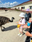 Очень классно провели время! Были на зверо-туре 12.07.25. Сначала нас развлекали аниматоры с конкурсами (танцевали, прыгали, залезли в "трубу" за подарками). Потом пенная дискотека и стрельба из водяных пистолетов. Далее квест с рассказами о животных, которые есть на страусиной ферме (эму, африканские страусы, кролики, цесарки, индюки, павлин, чёрные хрюшки, ослик, овечки, козы, гуси). Кормление всех животных. Посещение страусиного инкубатора. Мастер-класс по изготовлению лимонада (лимонада хватило всем (и взрослым и детям)). Детям вручили часть скорлупы страусиного яйца, блокнот с наклейками и подписью для каждого ребёнка индивидуально. Большее спасибо Сонечке, девушка, которая разрисовывала всех (боди-арт) и помогала экскурсоводу. Огромная благодарность экскурсоводу, которая всю эту экскурсию провела (человек от бога, который вкладывает душу). Но, простите, не знаю имя. Простите. Кафе: очень вкусный суп из цесарки (400 р.) , картофельные зразы 350 р., омлет из страусиных яиц 400р. пальчики оближешь. Рекомендую посетить ферму. Не пожалеете.