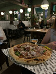 мы посетили пиццерию с друзьями, что было отличным решением, тк это место создано для комфортного времяпрепровождения с друзьями, здесь очень уютно и атмосферно, особенно когда зажигают свечки, так и хочется разговаривать здесь часами! мы взяли конечно же каждый по пицце, для меня как вегетарианца здесь был огромный выбор, аж несколько видов пицц, мне нравится в целом, что в их заведениях не забывают про нас и делают отдельные позиции🥹 выбор пал на bianca - три вида сыра и трюфельный мед, а у ребят pastrami & pickles - пастрами из говядины с пикулями и горчицей; невероятно вкусно, сочно и сытно, тесто, как я люблю пышное прям из печи, одна пица на одно человека взяли по пиву и классно отдохнули, разглядывали детали, в виде печи из мозаики и надписи при входе, разные детали в виде меню прикрепленного к стене и обсуждали совместные планы! хотим вернуться еще, но обратите внимая, что заведение открывается в 15:00 и можно забронировать столик заранее, а то можно простоять в очереди! +есть магазинчик с прикольной едой