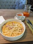 Очень уютное заведение, красивое, разнообразное меню, вкусная еда, большие порции и замечательный персонал❤️ Пока это единственное место, где салат с баклажанами подали с действительно хрустящими баклажанами, очень вкусный кстати)) Также хочу отметить прекрасный выбор музыки и удобные столовые приборы, которые идеально ложатся в руку. Что не понравилось: - у карбонары странная маслянистая текстура и сыр определенно не подходит, он горчит и перебивает весь вкус. Вообще было ощущение, что использовали не очень свежий сыр. - неудобный стол, его ножки были просто повсюду, что мне некуда было поставить свои😅 - не понравилось, что официантам не разрешают сидеть. Я все таки считаю, что должно быть комфортно всем.