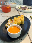 Вот обновлённый и уточнённый отзыв для Яндекс Карт, с учётом всех ваших замечаний: --- Уютное место с приятным интерьером и хорошим обслуживанием. Пробовали тартар, стейк, баклажаны в кисло-сладком соусе и роллы с соусом том ям — всё было вкусно и оригинально. Чай с грейпфрутом — ароматный и освежающий. Единственный минус — не пустили на веранду, хотя была отличная погода, объяснили, что она работает только вечером. Также не хватило соуса к роллам, попросили добавить — принесли, но долго, и включили в счёт как дополнительную порцию за 100 ₽, что показалось нелояльным.