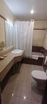 Минусы - мебель в номерах и в баре уставшая, вся в пятнах, сколах, трещинах. В номере ковролин тоже в пятнах. Вода в душе бежит то холодная, то горячая, квест чтобы покупаться. Утром на второй день, вообще вода холодная закончилась, а я с намыленной головой... Минуты через 3 холодная вода появилась. На завтраки кормят плохо, каша ужасная, сваренная крупа, разведённая потом молоком, блюда еле теплые, персонал не обучен общению, молодежь дерзкая, вызывает на конфликт. Ресторана там точно нет, барная стойка из прошлого века, два стола с раздачей, мрачное, темное помещение в подвальном помещении, метров 20ти. Плюсы - удобная кровать, хорошее чистое белье, полотенца, уборка хорошая, в номере чисто. Удобное расположение отеля. Отелю точно требуется реновация и обучение персонала.