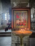 Посещали данный храм на яблочный спас, впечатления остались двоякие. С одной стороны интересная история основания, древний храм, красивые виды вокруг. Но с другой место наезженное для туристов, на входе в храм стоит стол на нем можно написать записки о здравии или упокоении, ящик для пожертвований. В самом храме много икон но они современного формата, свечей нет и подсвечники не горят если захотите поставить свечи то это не возможно и вообще непонятно проходят ли там церковные службы, туристы ходят и в коротких шортах и женщины без платков. Вообще выглядит все это как имитация действующейго храма, а по факту место куда везут туристов.