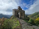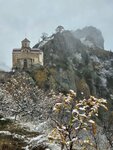 Место очень красивое, с панарамными видами, не смотря на погоду. Храм очень аскетичный и этим притягательный, как будто где-то в Грузии, не удивительно, это чуть ли не первый православных храм на территории РФ, построенный и сохранившийся в византийском стиле с ХI века, хоть батюшку или кого-либо из свещеннослужителей мы там и не встретили, но он действующий. Добраться легко, особенно, если у Вас кроссовер и вы едите например по пути из Архыза на Домбай. Очень загадочная штука, рядом с храмом в середине октября цветёт куст-дерево, похожее на сливу или вишню. Вобщем было бы ничего необычного, если бы не середина октября.
