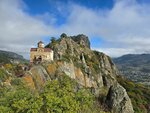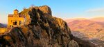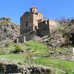 Очень колоритное место. Сразу скажу храм действующий. Дорога к нему конечно каменистая, но можно подняться даже на обычной машине, аккуратно, но можно. Подьем крутой и интересный. Храм оставляет глубокий след в душе. Самое интересное что он без служителей, подходишь надпись - уходя закрой дверь на засов. Свечки лежат для всех -за пожертвования, никто их не продает. Рядом с храмом - беседка звонница. Виды конечно «огонь».