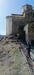 Вид шикарный открывается с этого места. Подняться лучше не на легковой машине. Подъем крутой и каменистый. На территории лестница до самого храма. В храме можно поставить свечи, платки и юбки имеются. Через мостик колокол. Истории и легенды не менее интересные.