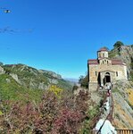 Нам понравилось. Место красивое, огромные горы вокруг. Территория огорожена и от калитки нужно подниматься по довольно крутой лестнице. Храм ухоженный, чисто и тепло внутри (мы попали в тихий дождь). Много иконок, можно постоять и помолиться. На входе есть платки для женщин, а также свечи и ящик для пожертвований. Ещё два стола для написания имён - за здравие и поминовение. Больше нигде платить не надо. Мы были на своей машине. Внизу, перед подъемом, есть местные машины, которые привозят туристов на место. Место красивое, виды завораживают, высота огромная. Мостик до колокольни - это тоже скала, по краям растёт можжевельник. В колокол мы не стали звонить, потому что в обращении просьба - не беспокоить местных жителей. Советую посетить