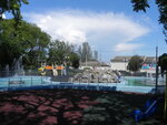 Плюсы: Хорошее новое резиновое покрытие, фонтан, большая площадь, всегда есть с кем поиграть. Минусы: рядом дорога, часто ветер с моря, далеко магазин и туалет.
