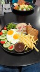 Потрясающе приятное место. Много пространства. Были тут в выходной, в 10 утра. Тихо, спокойно. Почти классические английские сытные завтраки, вместо фасоли у меня почему то был картофель фри. Отличный, мастерски приготовленный, кофе капучино, с нежной пенкой и необходимой крепости. Нежная Свежая выпечка и десерты. Есть небольшая детская комната. Столиков не так много, и к 12 кафе наполняется людьми.