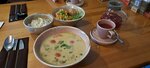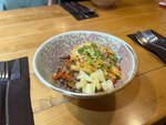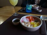 Приятное место, но по факту, суп фо бо был пересоленным, лапша кислая с кусочками перца чили который отбивал кислый вкус меняя на огненно жгучий. Жене к слову салат очень понравился и рис съела с удовольствием, предварительно заменив свою вилку на мою, потому что ей принесли грязную….. ну и вишенка на торте это сангрия! Фрукты залитые крепленным вином…. Я не пробовал, но жена сказала гадость редкостная…. В защиту кафе хочу сказать что они используют некоторые ингредиенты хорошего качества, но как написано на вывеске кафе с претензией на ресторан……Увы пока это только претензия…..