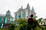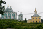 Впечатляющий собор. Виден с нескольких точек в городе и со всех вызывает невероятные чувства. Мы попали в Смоленск в дождливую погоду и поэтому всё выглядело немного серовато, но этот собор впечатлил даже в такую погоду. Стоит увидеть его и со стороны Покровской церкви и со стороны Большой Советской улицы, особенно если по ней ехать. Он открывается величественным в этом случае. Из внутреннего дворика можно выйти на Соборную площадь с памятником Владимиру Мономаху, также туда можно попасть и поднявшись по дороге через Богоявленский собор. За Успенским собором есть небольшой "дворик" с цветами. Возможно мы попали в не очень хорошее время, но он выглядел тоскливо. Его стоило бы сделать более ухоженным. Очень советую посетить данный собор, лучше даже с экскурсоводом. Мы ходили сами по себе, но когда проходили рядом с экскурсиями, которые проводили местные экскурсоводы, то слышали интересные вещи.