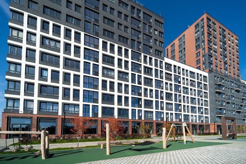 Из плюсов новое жилье. Выход из подъездов на обе стороны дома- с одной стороны парковка, с другой резиновая детская площадка. Мне такие площадки не нравятся. В доме пункты выдачи маркетплейсов, что очень удобно и магаз Красное&Белое. Пока рядом нет продуктовых магазинов, идти нужно пару кварталов. Открыли в соседнем доме аптеку и Мокрый нос.