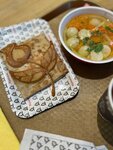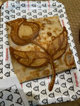 Сделали чудесный блинчик, поднимающий настроение - с розочкой! И сразу улыбка на весь день обеспечена, спасибо! Гурьевска каша вкусная, куриный суп тоже, блинчики замечательные! Сотрудники доброжелательные, заказ получили быстро!