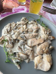 The restaurant is located in the park. Very beautiful views. Everything is green around, and the restaurant is in the center of the pond. The waiters were polite and courteous. The food is delicious.