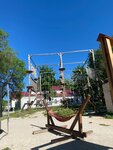 Проезжали с детьми мимо по дороге в Пушкинские Горы, остановились буквально случайно завидев пустующий веревочный городок. пункт проката оказался богат на снаряжения в отличном состоянии, команда внимательных и доброжелательных ребят помогли подобрать все, что нужно. Пока наши старшие карабкались по верхним этажам за ними следил и подсказывал, когда надо инструктор снизу, второй инструктор был постоянно рядом с нашей малышкой -5лет на первом уровне, потом пошли в кафе-уютно, вкусно, приятная атмосфера и персонал. Очень рекомендуем делать остановку в этом приятном местечке, команда, интерьер - все с душой.