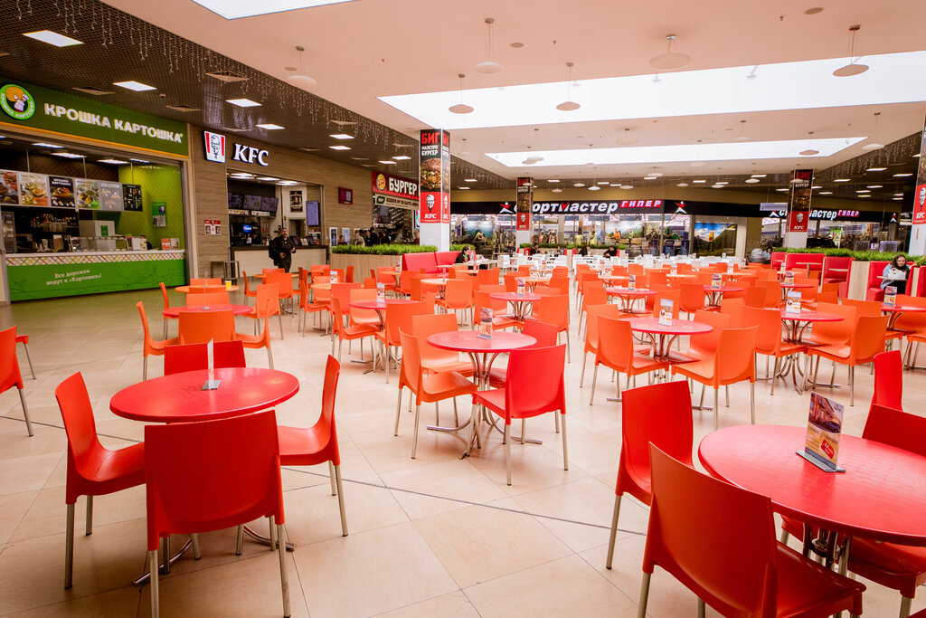 Много людей, но в павильонах меньше, так что за покупками можно сходить и получить хорошее настроение, особенно под Новый год атмосфера тц обеспечена, есть кофейня, туалеты и фуд корд (крошка картошка, kfc, бургер Кинг) иногда выставляют какие нибудь новые авто в центре, в основном народ в магазинах одежды и обуви, зенден например и cun