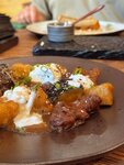 Полное разочарование, заказали стейк стриплойн medium rare, по итогу принесли прожарку medium well, мясо было с очень горчащим маслом как будто масло не меняли весь день , к стейку мы взяли овощи гриль где помимо перца и баклажанов было пол луковицы неужели нельзя было вместо лука положить хотя бы пару шампиньонов, так же тар тар из оленины в котором вкуса оленины вообще не было, так как перебивало вкус дичи толстый кусок ржаного хлеба и черный перец. К справедливости ради салат с ростбифом был не плох и хрустящие баклажаны с говядиной понравились, стейк предложили переделать, после отказа убрали из счета. За мясом в этот мясной ресторан мы врятли еще придём.