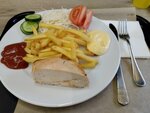We were passing through the city, a good cafe, but the chicken is cold and not fresh, the cucumbers are not edible (I don't remember the name, they are sold with French fries on a plate), the burger is normal, but there are bones in the cutlet, the milkshake is delicious. The shawarma is so-so, the chicken in it is the same as described above. There is a toilet.