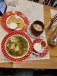 Отличное место, где можно уютно и вкусно переждать время до поезда. В советском стиле оформлен зал ресторана, постоянно транслируются старые добрые советские фильмы, типа "Москва слезам не верит", " Операция Ы". Мягкие диванчики располагают сытно пообедать, например. Мы взяли зелёный борщ (суп со щавелем) с мясом, вареники с картошкой и вареники с капустой и грибами с разными соусами - аджикой и сметаной, а также блинчики со сметаной, ароматный горячий брусничный морс. Первое блюдо понравилось, мяса было достаточно, говядина была мягкой, хорошо проваренной. Вареники из нежного теста.